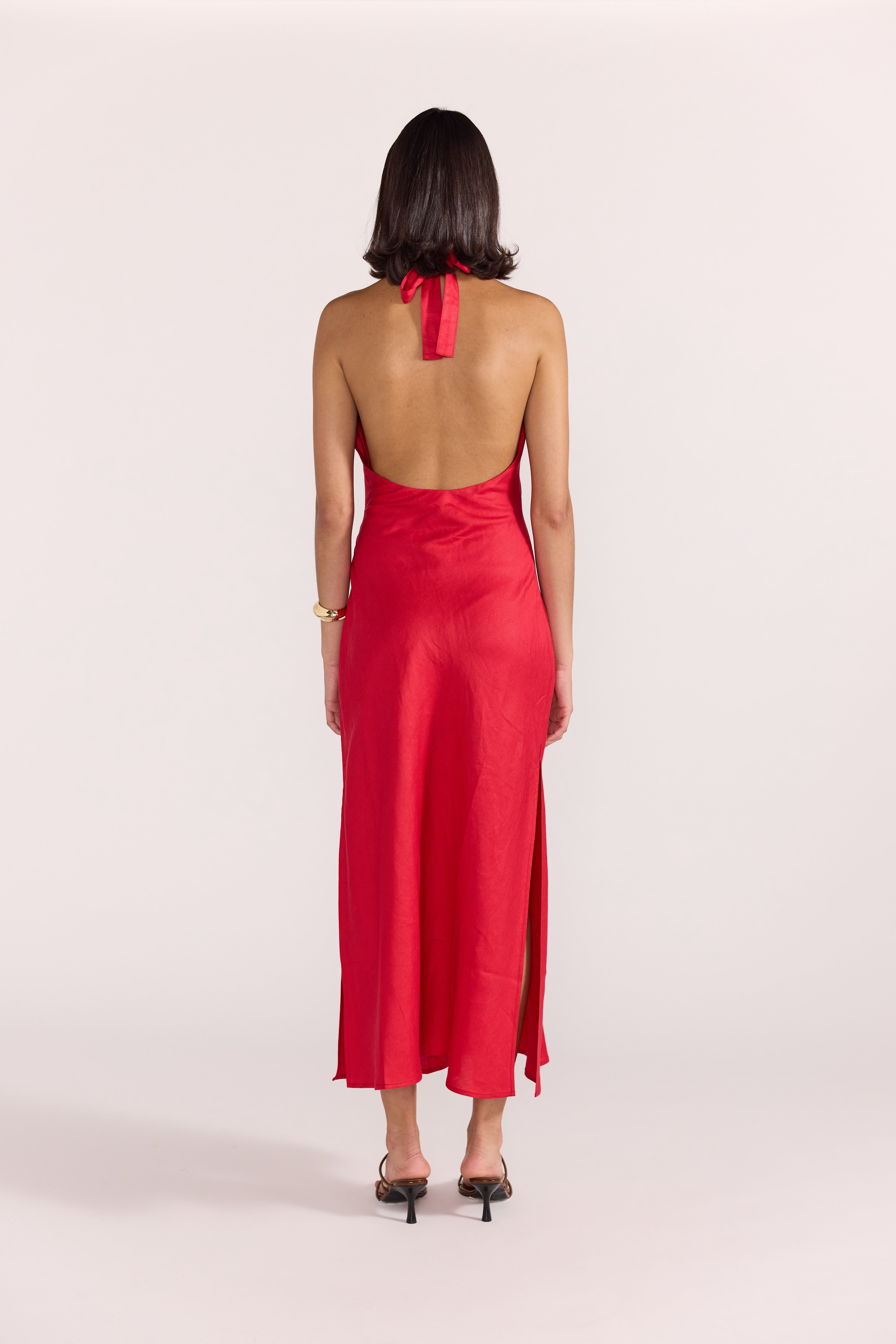 Amana Halter Bias Dress-Red