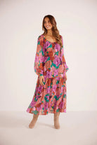 The tiered design creates a beautifully flowing silhouette that moves with every step, Long sleeves offer just the right amount of coverage for cooler evenings or breezy days, ensuring versatility from daytime adventures to twilight gatherings.