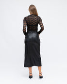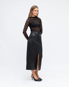 Alternatively, when paired with a pair of jeans, this top transforms into the epitome of chic casual wear. Its transparency adds a hint of mystery, balanced by the high neck which offers a hint of modesty. The contrast between the soft, sheer lace and the casual denim creates a striking look that effortlessly transitions from day to night.