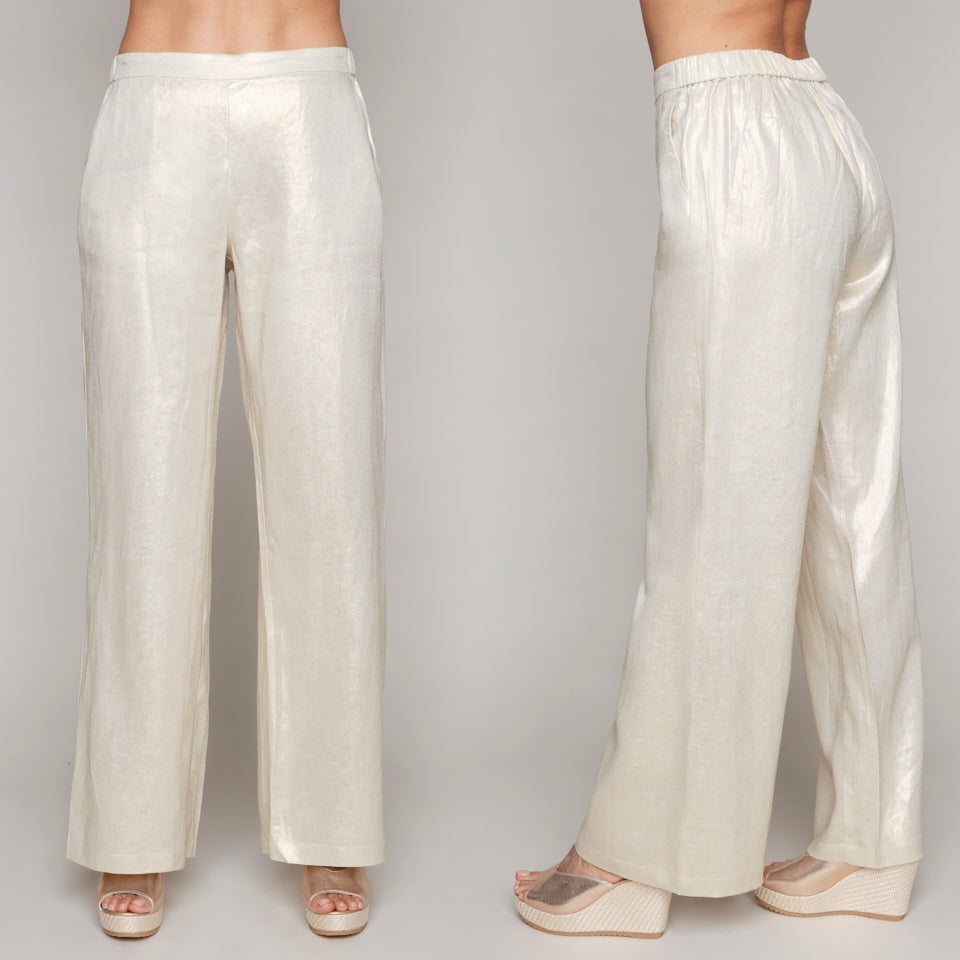 Woven Wide Leg Pants 100% Linen - Carre Noir Collection - Beige / Gold